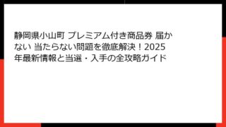 静岡県小山町のプレミアム付き商品券とは?当選確率の基礎知識と人気の理由 静岡県小山町のプレミアム付き商品券は、町民の生活を支える重要な経済支援策として、長年にわたり実施されてきました。 特に、近年は物価高騰や燃料費の上昇が続く中で、この商品...