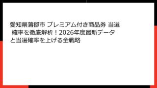 愛知県蒲郡市 プレミアム付き商品券 愛知県蒲郡市 プレミアム付き商品券 当選 確率を徹底解析!2026年度最新データと当選確率を上げる全戦略