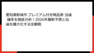 愛知県新城市 プレミアム付き商品券 愛知県新城市 プレミアム付き商品券 当選 確率を徹底分析!2026年最新予想と当選を最大化する全戦略