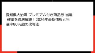 愛知県大治町 プレミアム付き商品券 愛知県大治町 プレミアム付き商品券 当選 確率を徹底解説!2026年最新情報と当選率80%超の攻略法