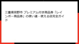 三重県熊野市プレミアム付き商品券の当選確率を徹底解説!地域経済活性化のチャンスを掴む方法 三重県熊野市で実施されるプレミアム付き商品券は、地域住民にとって大きな魅力を持つ施策です。 この商品券は、購入額に対して一定のプレミアムが付与される仕...