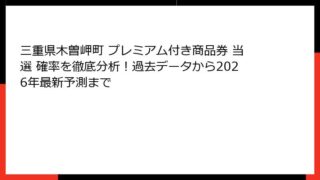 三重県木曽岬町プレミアム付き商品券の概要と当選確率の重要性 三重県木曽岬町プレミアム付き商品券は、地域住民の生活を支え、町内経済を活性化させる重要な施策として注目されています。 この商品券は、購入額に対して一定のプレミアムが付与される仕組み...