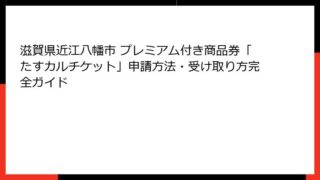 滋賀県近江八幡市のプレミアム付き商品券とは?概要と魅力の徹底解説 滋賀県近江八幡市は、古くから商人の町として知られる歴史ある地域で、水郷の風景や伝統的な建造物が魅力的な観光地です。 そんな近江八幡市では、住民の生活支援や地域経済の活性化を目...