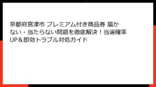 京都府宮津市のプレミアム付き商品券とは?当選確率の基礎知識と魅力 京都府宮津市 プレミアム付き商品券 当選 確率について、多くの方が関心を寄せているこのトピック。 宮津市は、京都府北部に位置する美しい海辺の街で、天橋立をはじめとした自然景観...