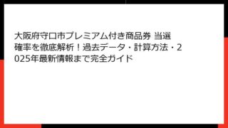 大阪府守口市 プレミアム付き商品券 大阪府守口市プレミアム付き商品券 当選 確率を徹底解析!過去データ・計算方法・2025年最新情報まで完全ガイド