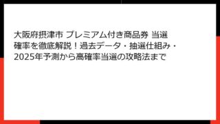 大阪府摂津市 プレミアム付き商品券 大阪府摂津市 プレミアム付き商品券 当選確率を徹底解説!過去データ・抽選仕組み・2025年予測から高確率当選の攻略法まで