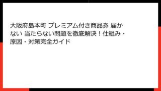 大阪府島本町のプレミアム付き商品券とは?基本情報と魅力の徹底解説 大阪府島本町のプレミアム付き商品券は、地域経済の活性化と住民の生活支援を目的とした魅力的な制度です。 この商品券は、購入額に対してプレミアム分が上乗せされるため、通常の買い物...