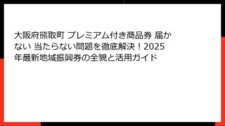 大阪府熊取町のプレミアム付き商品券当選確率を徹底解説!人気の理由と概要 大阪府熊取町のプレミアム付き商品券は、地域経済の活性化を目的とした魅力的な施策として、多くの住民から注目を集めています。 特に、当選確率の低さが話題になることが多く、抽...