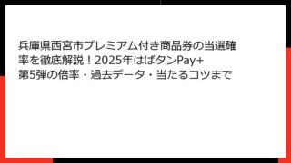 兵庫県西宮市プレミアム付き商品券の当選確率を徹底解剖!2025年最新のはばタンPay+情報で当たる確率を高めよう 兵庫県西宮市在住の皆さん、こんにちは。 2025年も残りわずかとなりましたが、今年も家計を助ける強力なツールとして注目されてい...