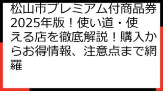 松山市 プレミアム付商品券2025:当選確率アップ大作戦! 知っておくべき全情報 松山市にお住まいの皆さん、そして「松山市 プレミアム付商品券 当選 確率」で検索されている皆さん、こんにちは! 2025年版の松山市プレミアム付商品券に関する...