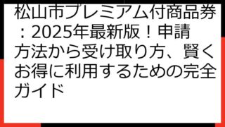 松山市 プレミアム付き商品券 松山市 プレミアム付商品券 当選 確率UP大作戦! 2025年版:応募から利用まで完全ガイド! よく当たる秘訣を徹底解説!
