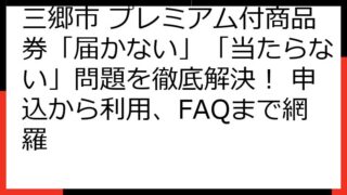 三郷市プレミアム付デジタル商品券:当選確率を徹底分析!申し込みから利用までの完全ガイド 三郷市にお住まいの皆様、朗報です! お得なプレミアム付デジタル商品券の、2025年度の情報が公開されました。 このガイドでは、「三郷市 プレミアム付き商...