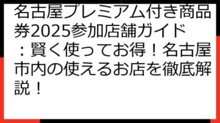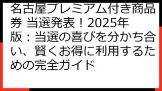 【落選者向け】名古屋プレミアム付き商品券2025完全ガイド:次こそ当選するための戦略と代替案 名古屋プレミアム付き商品券の落選通知を受け取り、がっかりしているあなたへ このブログ記事は、そんなあなたを全面的にサポートするために書かれました。...