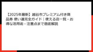 越谷市のプレミアム付き商品券とは?2025年最新情報と当選確率の全体像 越谷市在住の方々にとって、毎年注目を集める経済活性化施策の一つがプレミアム付き商品券です。 特に2025年の越谷市プレミアム付き商品券は、物価高騰対策として強化されてお...