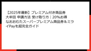 導入部 - 大牟田市のプレミアム付き商品券の概要と人気の背景 大牟田市のプレミアム付き商品券は、地域経済の活性化を目的とした魅力的な制度として、多くの市民から注目を集めています。 特に「プレミアム付き商品券 大牟田 当選 確率」というキーワ...