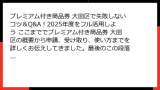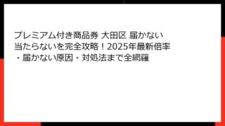 大田区プレミアム付き商品券とは?当選確率の基礎知識とその魅力 大田区のプレミアム付き商品券について、皆さんはどれくらいご存知でしょうか?特に、当選確率がどれほど高いのか、気になっている方が多いと思います。 この記事では、大田区が発行するプレ...