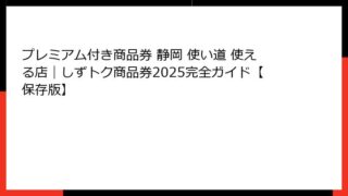 静岡のプレミアム付き商品券とは?当選確率を知って賢く活用しよう 静岡県や静岡市をはじめとする地域で発行されるプレミアム付き商品券は、物価高騰対策や地域経済活性化を目的とした魅力的な制度です。 この商品券は、購入額に対して一定のプレミアム(上...
