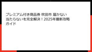 吹田市のプレミアム付き商品券とは?当選確率が高い理由を徹底解説 吹田市のプレミアム付き商品券は、地域経済の活性化を目的とした魅力的な制度で、市民の間で大変な人気を博しています。 この商品券は、購入額に対して一定のプレミアム(割増金)が付与さ...