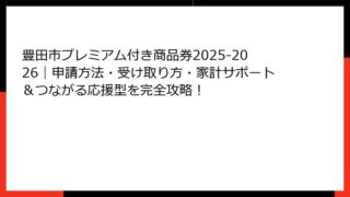 豊田市のプレミアム付き商品券 当選確率を徹底解説!申し込みから倍率予測まで プレミアム付き商品券の基本概念とその魅力 豊田市のプレミアム付き商品券は、市民の生活を支え、地域経済を活性化させる重要な施策として注目を集めています。 この商品券は...