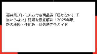 プレミアム付き商品券 福井 当選 確率の基礎知識:福井県の人気キャンペーンを徹底解説 プレミアム付き商品券 福井 当選 確率について調べている皆さん、こんにちは。 福井県では、地元経済の活性化を目的としたプレミアム付き商品券が定期的に発行さ...
