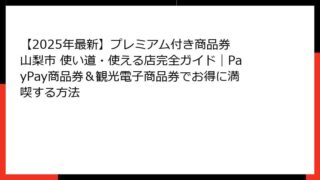 山梨市のプレミアム付き商品券とは?当選確率が鍵となる人気の理由を詳解 山梨市のプレミアム付き商品券は、地域経済の活性化を目的とした魅力的な制度として、多くの市民から注目を集めています。 この商品券は、購入額に対して一定のプレミアム(上乗せ分...