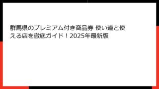群馬県のプレミアム付き商品券とは?当選確率を理解して賢く応募しよう 群馬県では、物価高騰対策としてプレミアム付き商品券が積極的に発行されており、多くの住民がこれを利用して生活を支えています。 プレミアム付き商品券とは、購入額に対して一定の割...