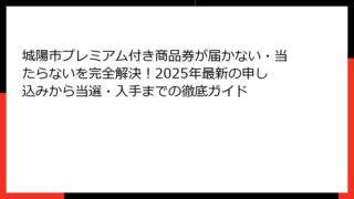 城陽市のプレミアム付き商品券とは?当選確率の基礎知識と人気の理由 城陽市のプレミアム付き商品券は、地元経済を活性化させるための魅力的な施策として、多くの住民から注目を集めています。 この商品券は、通常の額面以上に利用価値があるプレミアム分が...
