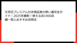 文京区のプレミアム付き商品券とは?当選確率を知る前に基本を押さえよう 文京区のプレミアム付き商品券は、地域経済の活性化を目的とした魅力的な施策として、多くの住民から注目を集めています。 特に、2025年の文京区共通PayPayデジタル商品券...