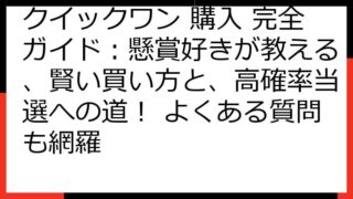 クイックワン カップ麺検索者のための完全ガイド:宝くじと食のエンタメ戦略 この記事は、クイックワンについて調べている方で、なおかつカップ麺がお好きなあなたのために書かれました。 宝くじ、特に即時性を売りにしているクイックワンに興味があるけれ...