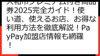 大和市プレミアムデジタル商品券:当選確率を徹底分析!2025年度版 最新情報と対策 この記事では、神奈川県大和市で実施されるプレミアムデジタル商品券について、2025年度版の最新情報と、当選確率を上げるための具体的な対策を徹底的に解説します...