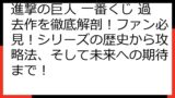 この記事では、大人気の一番くじ「進撃の巨人 生還せよ 調査兵団」を徹底的に攻略するための情報を、余すところなくご紹介します。
