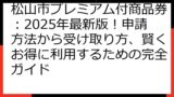 松山市 プレミアム付商品券2025:当選確率アップ大作戦! 知っておくべき全情報