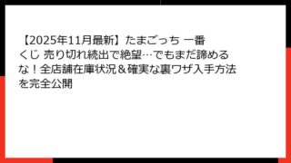 一番くじ(たまごっち) 【2025年11月最新】たまごっち 一番くじ 売り切れ続出で絶望…でもまだ諦めるな!全店舗在庫状況&確実な裏ワザ入手方法を完全公開