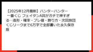 【2025年12月最新】ハンターハンター一番くじフィギュアをメルカリで最安値で手に入れる完全ガイド この記事を書いた理由と、あなたが今このページにたどり着いた本当の気持ち 2025年12月現在、あなたが「ハンターハンター 一番くじ フィギュ...