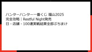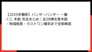 【2025年最新】ハンターハンター一番くじ in 北海道|発売日・取扱店舗一覧・確実な買い方まとめ 「ハンターハンター 一番くじ 北海道」で検索してここにたどり着いたあなた、今まさに心がざわついてますよね? クラピカの復讐編フィギュアがどう...