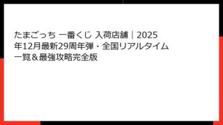 たまごっち一番くじ2025が熱すぎる!特に“あのハンカチ”がヤバい理由 2025年11月現在、街中がたまごっちで溢れている 皆さん、こんにちは!たまごっち育てるのにもう20年以上関わってるアラサーコレクターの「たまこ」です♪ 2025年11...