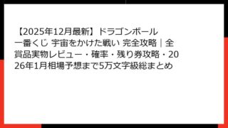 【2025年最新】ドラゴンボール一番くじと映画の最強タッグ!全ラインナップ総まとめ 「ドラゴンボール 一番くじ 映画」と検索したあなたに贈る、史上最速の完全ガイド 今この瞬間、「ドラゴンボール 一番くじ 映画」と検索してこの記事にたどり着い...