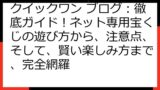 1. クイックワンの基本概要:ネット専用宝くじの定義