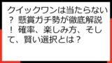 購入方法からゲーム形式、そしてリスクまで、クイックワンをプレイする上で知っておくべき重要な情報を網羅しています。