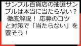 応募回数を増やすこと、そして、効率的にサンプラーを貯める方法など、すぐに実践できるノウハウを紹介します。
