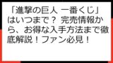 初めて一番くじに挑戦する方から、進撃の巨人ファンまで、誰もが楽しめる情報が満載です!