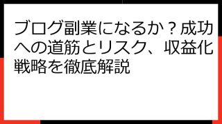 ブログ副業ジャンル完全ガイド:収益化しやすい分野と成功戦略 ブログ副業を始めたいけど、どんなジャンルを選べばいいのか迷っていませんか?。 収益化しやすいジャンルは?。 成功するための戦略はあるの?。 この記事では、ブログ副業で成功するための...