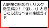- AI副業で成功する!初心者向け完全ガイド|始め方から稼ぐコツまで徹底解説