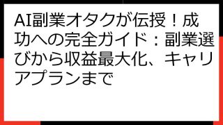 ```html AI副業診断:あなたのスキルと適性で最適な副業を見つけ出すための完全ガイド ``` AI副業に興味はあるけれど、自分にどんな仕事が向いているのかわからない…。 そんなあなたは、まさにこの記事を読んでいるべきです。 近年、AI...