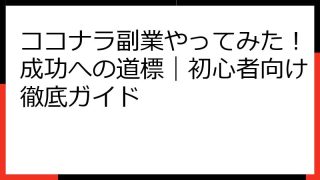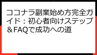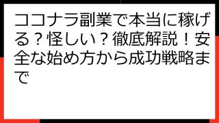```html ココナラ副業で月〇万円!成功者への道:戦略とスキルを徹底解説 ``` 副業を始めたいけど、何から始めたら良いのかわからない…そう思っている方も多いのではないでしょうか。 ココナラは、自分のスキルを活かして副業を始められる、人...