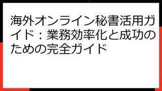 ```html 海外オンライン秘書活用ガイド:業務効率化とコスト削減を実現する効果的な選び方と活用法 ``` 近年、グローバル化が加速する中、企業は海外との連携を強化する必要性が高まっています。 しかし、言語や文化の違い、時間帯のずれなど、...