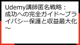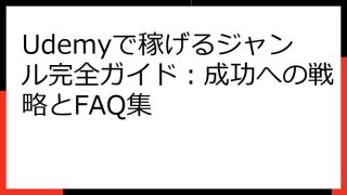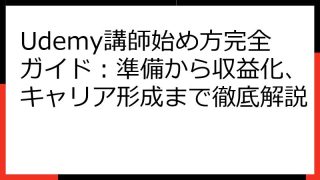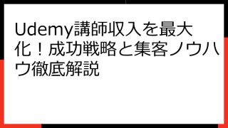 Udemy講師として成功する!準備から収益化までの完全ガイド この記事では、Udemy講師として成功するためのノウハウを網羅的に解説します。 Udemyでオンライン講座を販売したいと考えている方、あるいは既に講師として活動しているものの、さ...