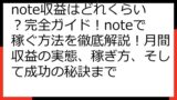 - 初期目標: まずは、少額の収益を目標に設定し、noteでの収益化の流れを掴むことから始めましょう。
